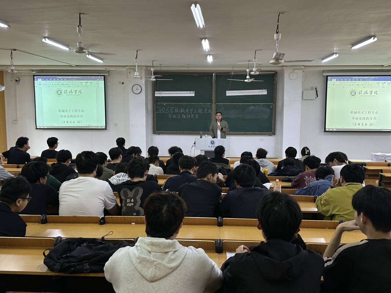 为引导2026届毕业生明确毕业实践方向、树立实践目标、做好毕业论文的准备工作,机电教研室于9月29日下午分别在人文楼108和实训中心104隆重召开2026届毕业生毕业实践动员大会。机械电子工程教研室张锐老师、郑海洋老师以及2026届全体机械电子工程专业毕业生参加了本次大会。
