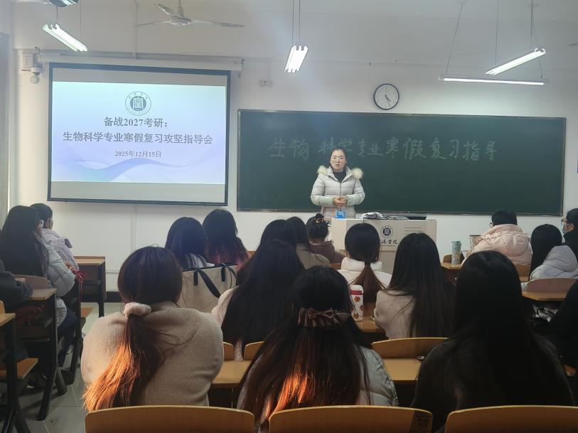 为帮助2027届生物科学专业学生明确升学备考方向,掌握高效复习方法,充分利用寒假黄金备考期,12月15日下午,太阳集团网tyc9728生物科学专业精心组织的寒假复习攻坚指导会在理工楼505顺利举行,会议由余倩云老师主持,2027届有考研及学业提升需求的学生参会,现场学习氛围浓厚。