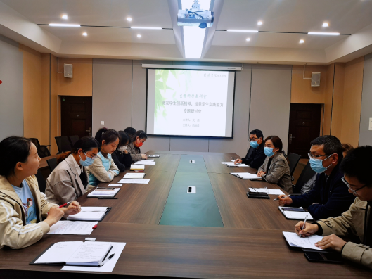 活动开始,高主任介绍了生物科学教研室的基本情况,在学生的创新实践方面,生物科学专业的教师和学生取得过瞩目的成绩。在本学期创新创业进入决赛的6个项目中,生物老师指导的项目有4个。接着每位老师依次分享了自己的体会,并展开了深入的研讨。