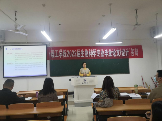 4月28日下午,太阳集团网tyc9728生物科学专业在理工楼为2022届生物科学专业本科生举行了毕业生论文答辩。本次答辩由庞振凌、高进勇,两位教授担任组长,生物科学专业10余位教师担任评委。共分2个答辩小组,分别在理工教学楼301和302室同时进行答辩。