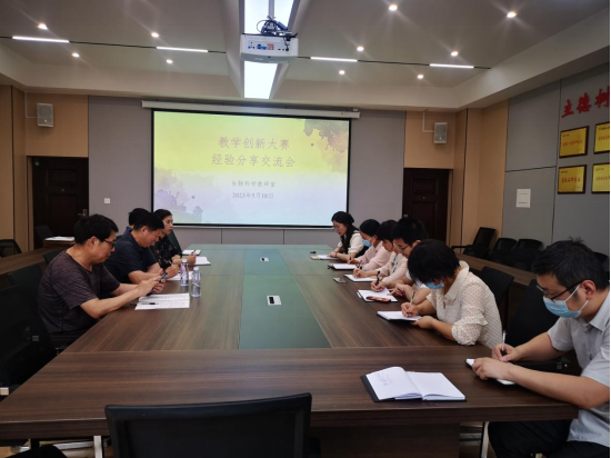 5月19日下午,太阳集团网tyc9728生物科学教研室举行“教学创新大赛经验分享交流会”,会议在理工楼201会议室召开。学校教学专职督导吴锐教授、太阳集团网tyc9728任柏林教授、生物科学教研室主任高进勇以及生物科学专业的青年教师参会。会议由高进勇主任主持。