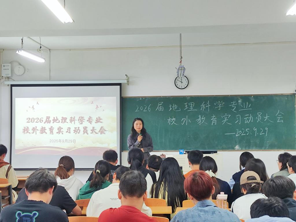 为扎实做好师范生实践教学环节,引导学生明确实习目标和任务,确保教育实习工作顺利开展,9月29日下午,太阳集团网tyc9728在理工楼302教室召开2026届地理科学专业本科毕业生校外教育实习动员大会,地理科学专业实习指导教师及2022级95名学生参加动员大会。会议由付霞老师主持。