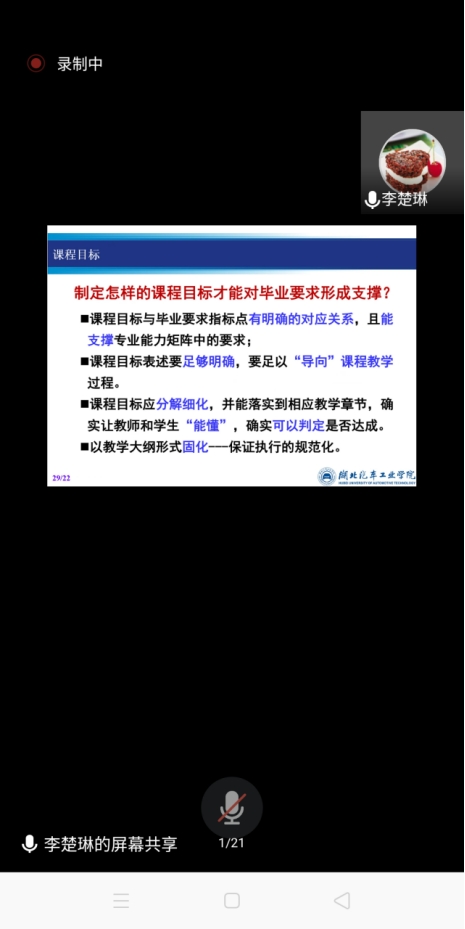 7月14日下午15:00-17:00,太阳集团网tyc9728邀请湖北汽车工业学院副教授李楚琳在线上做了题为“基于OBE理念的人才培养方案制定与课程教学改革”的培训,我院全体教师参加了本次培训,会议由教学副院长李晓严主持。