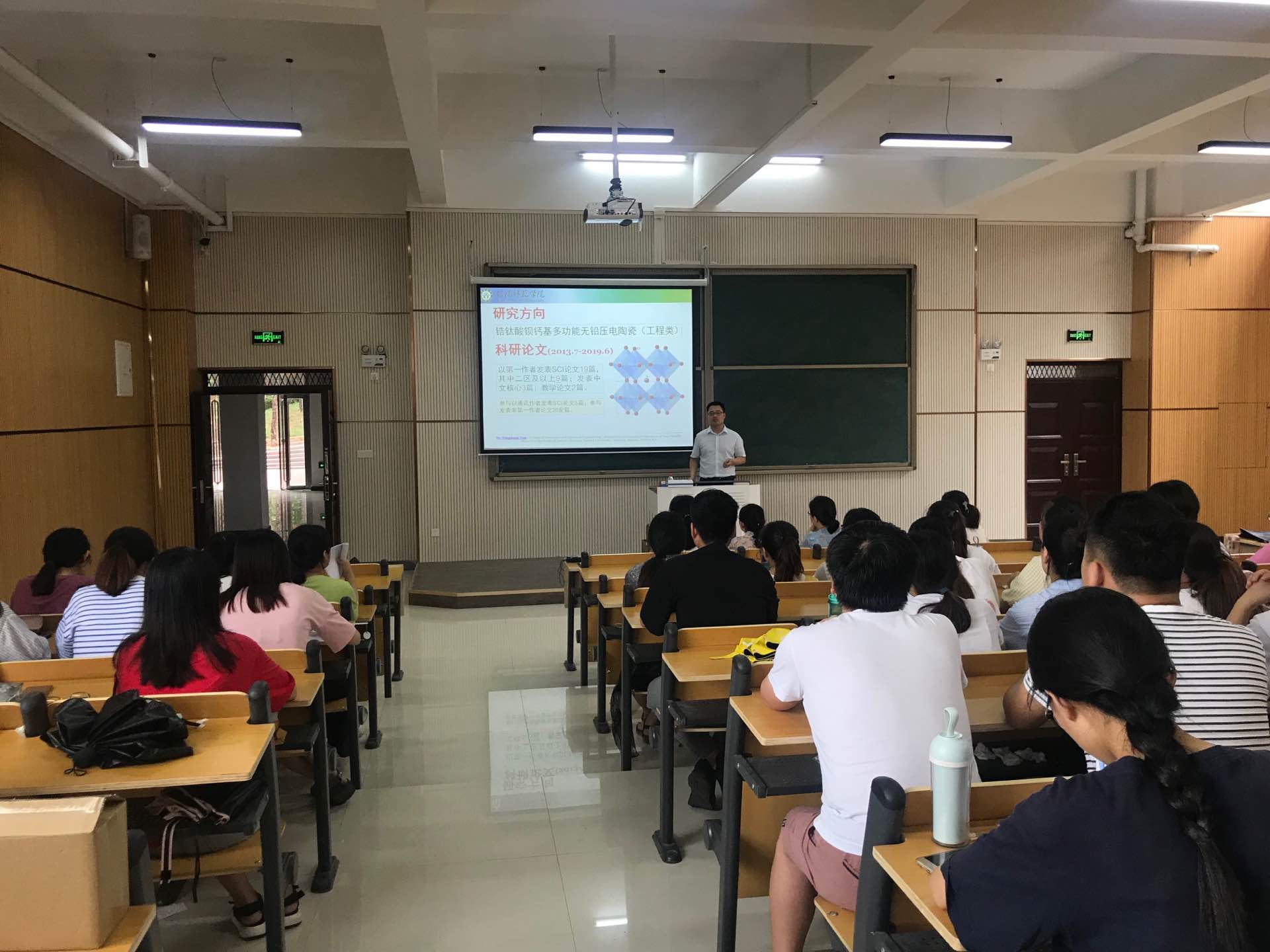 6月5日下午,信阳师范学院田永尚博士应邀在创业大厦实训中心103报告厅做了题目为《稀土离子共掺杂BCZT基无铅压电陶瓷结构调控与电学性能优化》的学术报告,太阳集团网tyc9728化学教研室全体教师及化学专业的100余名师生聆听了本次报告会。