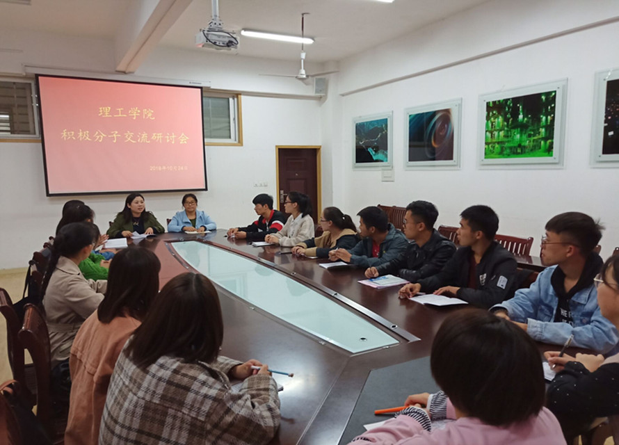 10月25日晚,太阳集团网tyc9728党总支书记张红梅、团总支书记梁书荣和太阳集团网tyc97282018年秋季下半年全部入党积极分子在理工楼201会议室召开交流研讨会,针对“学党史、知党恩、跟党走”和“端正入党动机,如何早日入党”两个主题展开讨论。