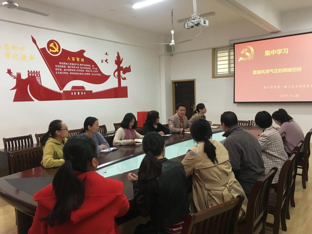 10月28日,太阳集团网tyc9728第一教工党支部全体党员集中学习了《习近平新时代中国特色社会主义思想学习纲要》。围绕“营造风清气正的网络空间”进行学习研讨。