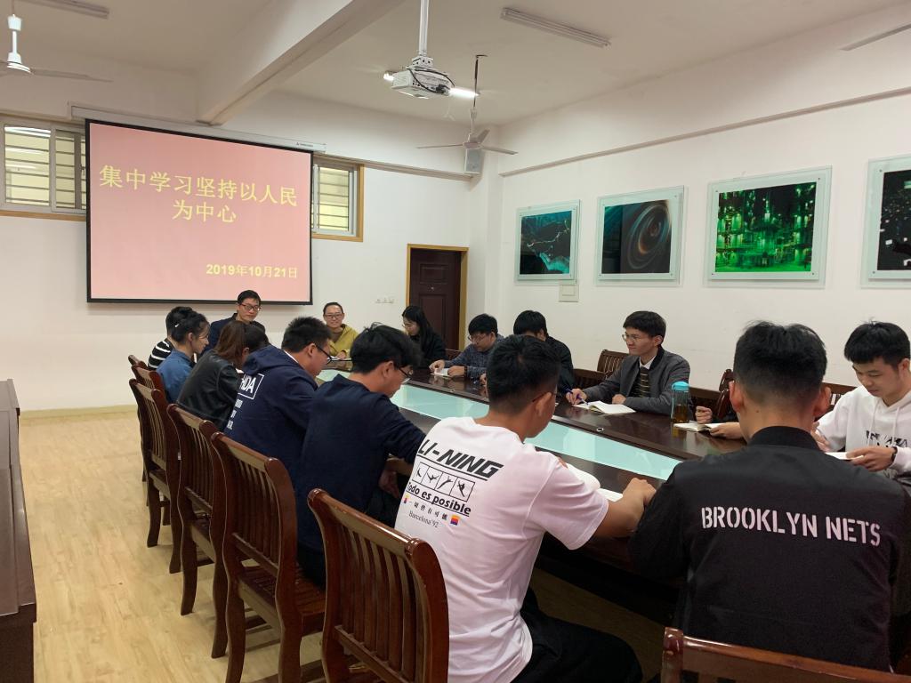 10月21日,太阳集团网tyc9728院学生第一党支部在理工楼201会议室开展了“坚持以人民为中心”的支部集中学习活动。本次活动主要是为了进一步发扬党的优良传统,保护人民群众的利益。会议由支部书记杨晓杰、副书记张帆和学生第一党支部全体党员参加此次会议。