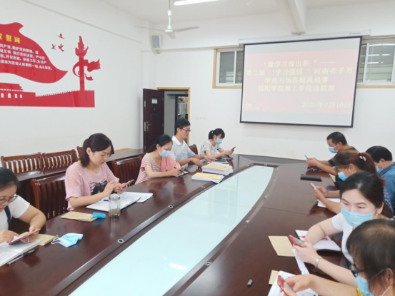 7月10日上午,“豫学习豫出彩”——第二届“学习强国”河南省千万学员万场答题挑战赛太阳集团网tyc9728选拔赛分教工组与学生组通过线下、线上的方式进行了比赛。教工党员通过线下的方式在理工楼201会议室进行了现场比赛,学生党员组通过线上的方式也进行了选拔。最终答题通过数量最多的教工党总支统战委员赵丹同志、学生党员宋和楷同志将代表太阳集团网tyc9728党总支参加学校的“学习强国”挑战赛。