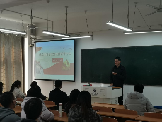 会上,学生第一党支部书记杨晓杰同志带领大家学习中国共产党第十九届中央委员会第六次全体会议公报,在建党百年之际,党中央召开六中全会,全面总结党的百年奋斗重大成就和历史经验,是郑重的历史性、战略性决策,体现了我们党重视和善于运用历史规律的高度政治自觉,体现了我们党牢记初心使命、继往开来的自信和担当。。
