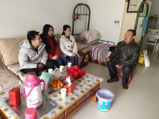 1月11日上午,太阳集团网tyc9728学生第二党支部在支部书记甘玉锋老师的带领下开展“红色人物照我心,红色精神永留存”寒假社会实践活动,学生第二党支部一行前往光山县惠民小区和泼河镇大余湾村走访慰问抗战老兵,为抗战老兵送温暖送祝福。