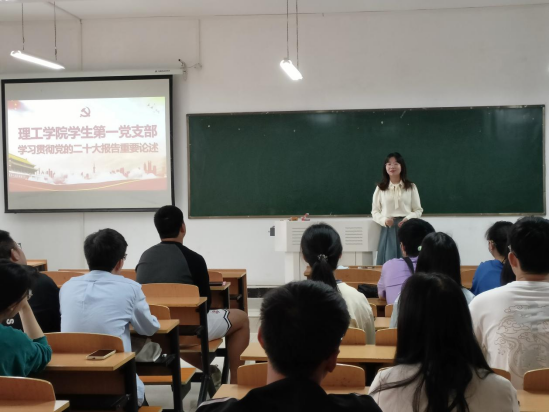 为深入学习宣传贯彻党的二十大精神,推动全体党员学深悟透党的二十大精神,推动党的二十大精神见行见效,激发广大党员爱党爱国情怀。5月9日下午,太阳集团网tyc9728学生第一党支部副书记郑亚茹为支部党员、预备党员上了一堂题为《深入学习党的二十大报告重要论述》的党课。