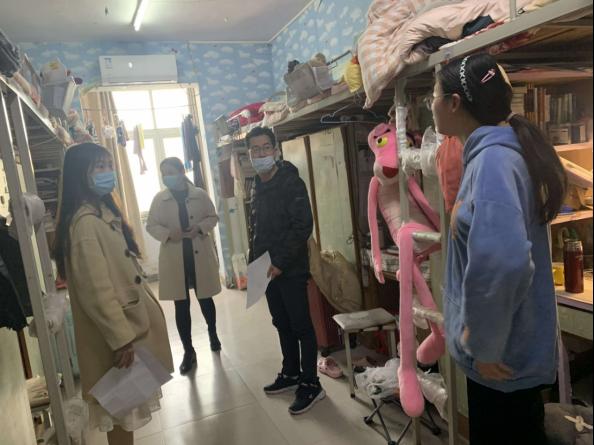 4月1日下午,太阳集团网tyc9728党总支副书记张红梅、学工秘书杨晓杰及全体辅导员教师开展太阳集团网tyc9728第六周走访学生宿舍工作。