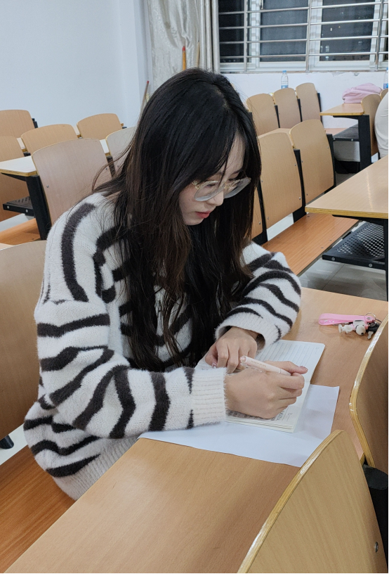 在学习方面,该生态度端正,认真仔细,严格要求自己,入学后,制定合理的学业生涯规划,有明确的学习目标。她根据自身情况设置短期目标并努力达成,学习从未松懈,认真专研专业知识,她有较强的时间观念,能够合理分配学习与工作的时间,为了提升自己的知识文化素养,上课时她认真听讲.做好笔记,积极思考并回答老师提出的问题,从而带动同学们上课时与老师之间的互动, 课下她按时复习,定期回顾以前所学的知识,补充疏漏,也经常和同学们探讨问题,共同研究,共同进步。在今后的学习中,她定戒骄戒躁,夯实基础。