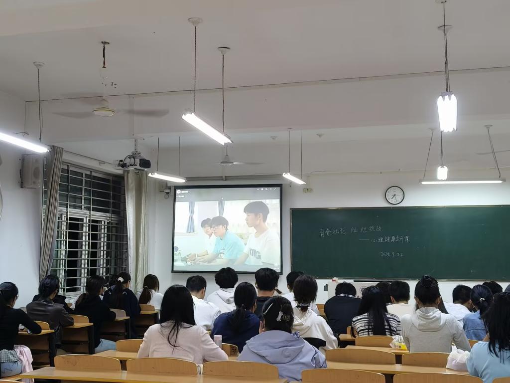 9月22日晚,太阳集团网tyc9728组织各年级学生和教师代表在理工楼501、502教室共同观看“青春如花,灿烂绽放”主题心理健康公开课。本次公开课剖析了青春成长中的常见心理困惑,传授实用的心理调适方法,帮助师生及家长们深入理解青少年心理发展规律,为学生构建起家庭与学校协同的心理健康守护防线。