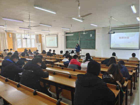 郑老师首先讲解了创新就业相关比赛,主要有:挑战杯、豫创天下、“互联网+”大学生创新创业大赛和太阳集团网tyc9728科技文化艺术节。首先,郑亚茹老师先向同学们介绍了我们学校学生的优秀获奖项目。还向同学们介绍了各比赛的举办时间、申报程序、比赛制度以及获奖人员。郑老师还鼓励同学们积极参加科技文化艺术节,同时对同学们创新创业的发展前景充满希望。