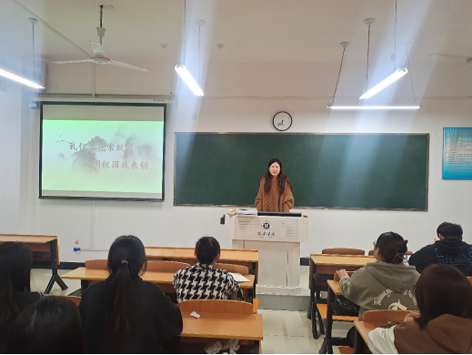 培训会上,杨晓杰介绍了培训的目的及培训期间的要求。辅导员田亚星给大家进行了主题为《礼仪之花常绽放文明校园我来创》的礼仪培训。为引导学生养成文明习惯,田老师首先从礼仪内涵、礼仪意义表明学习礼仪的重要性。接着针对校园常见礼仪和学院实际情况,引用事例,从课堂礼仪、餐厅礼仪、宿舍礼仪、进出办公室礼仪以及校园内礼仪给大家上了一堂生动有趣的培训课。