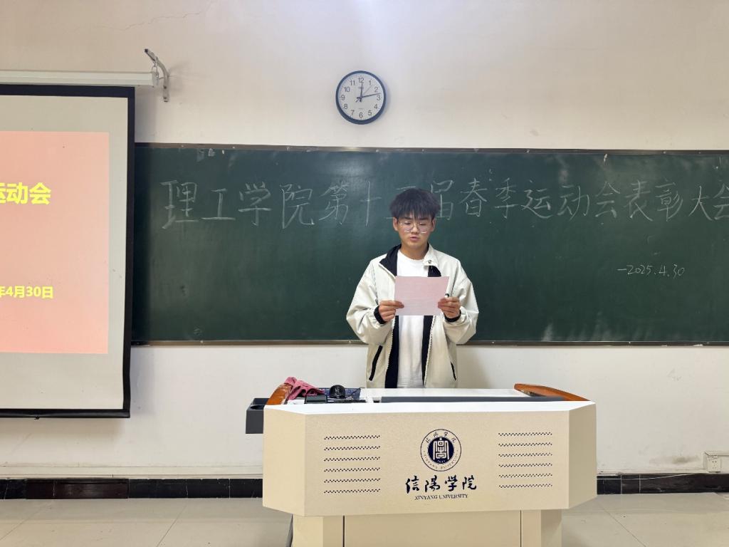 颁奖过后,体育部部长马笑洋同学上台发言,分享了运动会筹备及举办期间的点滴故事,从训练的艰辛到比赛时的紧张激动,引起在场师生的强烈共鸣。最后,团总支书记杨翔宇老师进行运动会总结致辞,他充分肯定了运动员们在赛场上的拼搏精神,以及全体工作人员为运动会成功举办所付出的努力,并鼓励大家将体育精神延续到日常学习和生活中。
