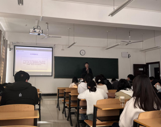 安徽一数一人工智能科技有限公司总经理吴鹏对公司的背景及技术技能进行了简单介绍,随后对本次招聘需求做了重点讲解,并现场利用讯飞星火软件为同学们展示一分钟制作PPT,同时也向同学们介绍了工作环境及住宿条件,并强调公司非常重视实习生的职业发展,为实习生提供了多种晋升渠道,欢迎同学们进群以便后期进行面试。