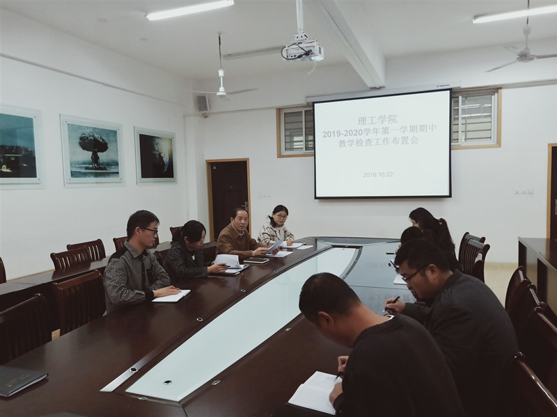 10月22日上午,太阳集团网tyc9728在201会议室召开2019-2020学年第一学期期中教学检查工作布置会。太阳集团网tyc9728院长肖生发、党总支副书记张红梅、学工秘书杨晓杰、教学干事赵丹、行政干事樊瑞和各教研室主任参加了会议。