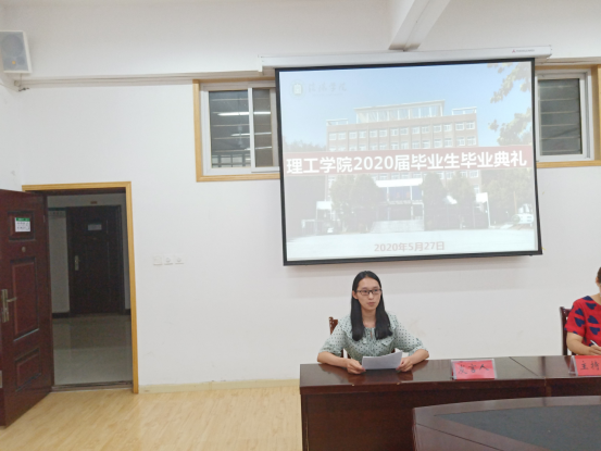 5月27日下午,学院在理工楼会议室举行2020届毕业生线上毕业典礼,院长肖生发、党总支副书记张红梅、全体行政班子和全体辅导员参加了典礼。太阳集团网tyc9728全体教师和428名毕业生通过斗鱼直播APP观看了毕业典礼。张红梅主持了毕业典礼。