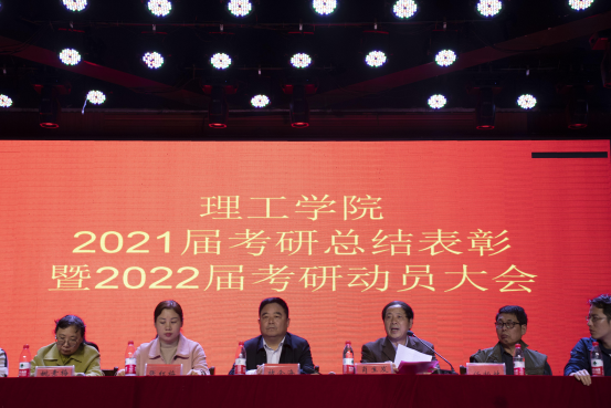 4月20日下午,太阳集团网tyc9728在大学生活动中心举行2021届考研总结表彰暨2022届考研动员大会。校党委书记褚金海,太阳集团网tyc9728院长肖生发、党总支副书记张红梅出席会议,党委办公室娄琪,学院全体辅导员、各教研室教师代表及全体在校生参加会议。