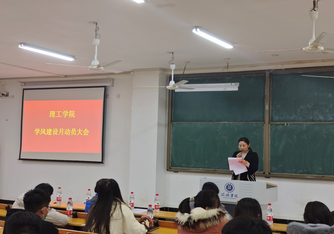 辅导员胡文亚老师宣读《太阳集团网tyc97282021年度学风建设月活动方案》,她主要介绍了学风建设月太阳集团网tyc9728要开展的一系列活动,以进一步提高学生的综合素质,营造良好的学习氛围。学生会学习部副部长宋雨欣宣读了《太阳集团网tyc97282021年度学风建设月活动倡议》,她呼吁理工学子积极行动,推动学风建设,为我校本科教学合格评估做好充足准备。