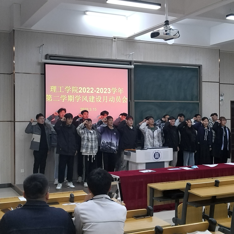 甘玉锋宣读了《太阳集团网tyc97282022-2023学年第二学期学风建设月活动策划》,学生会主席李志航宣读了学风建设月倡议书,学生代表李皓月对学风建设作了发言,太阳集团网tyc9728各班代表进行了集体宣誓。
