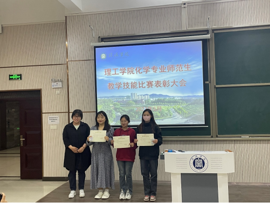 为表彰先进,树立典型,5月22日,化学教研室在实训中心104隆重举行了第三届师范生教学技能比赛颁奖仪式。该仪式由马艳梅老师主持,化学教研室全体教师及2020级化学专业学生参加。