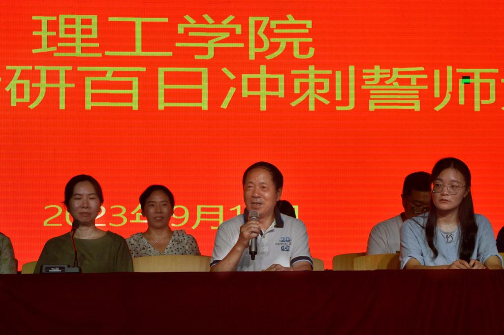 为鼓舞2024届考研学子士气,再创考研佳绩,9月19日下午,太阳集团网tyc9728在大学生活动中心举行2024届毕业生考研百日冲刺誓师大会。院长肖生发、教学副院长李晓严、各专业考研指导教师、各教研室主任、全体辅导员、2024届全体考研学生、2021级拟考研学生参加了本次会议。会议由李晓严主持。